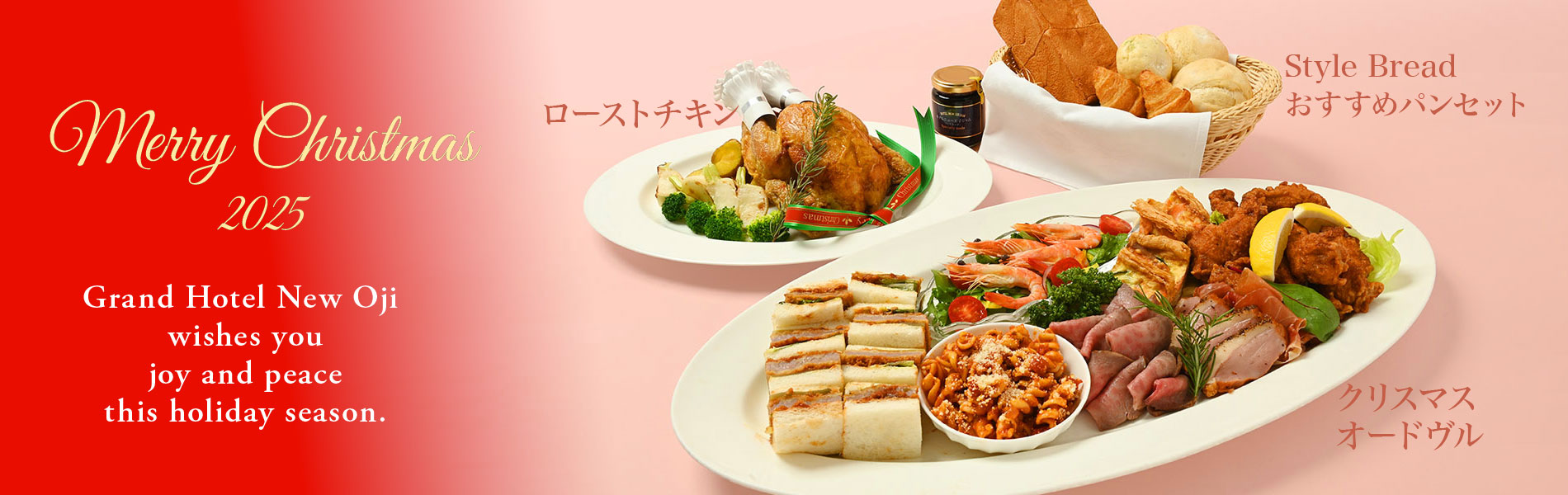 クリスマスオードヴル、ローストチキン、STYLE BREAD おすすめパンセットのご予約はグランドホテルニュー王子オンラインショップ、またはホテル1階ナナカマド店頭にて承ります。