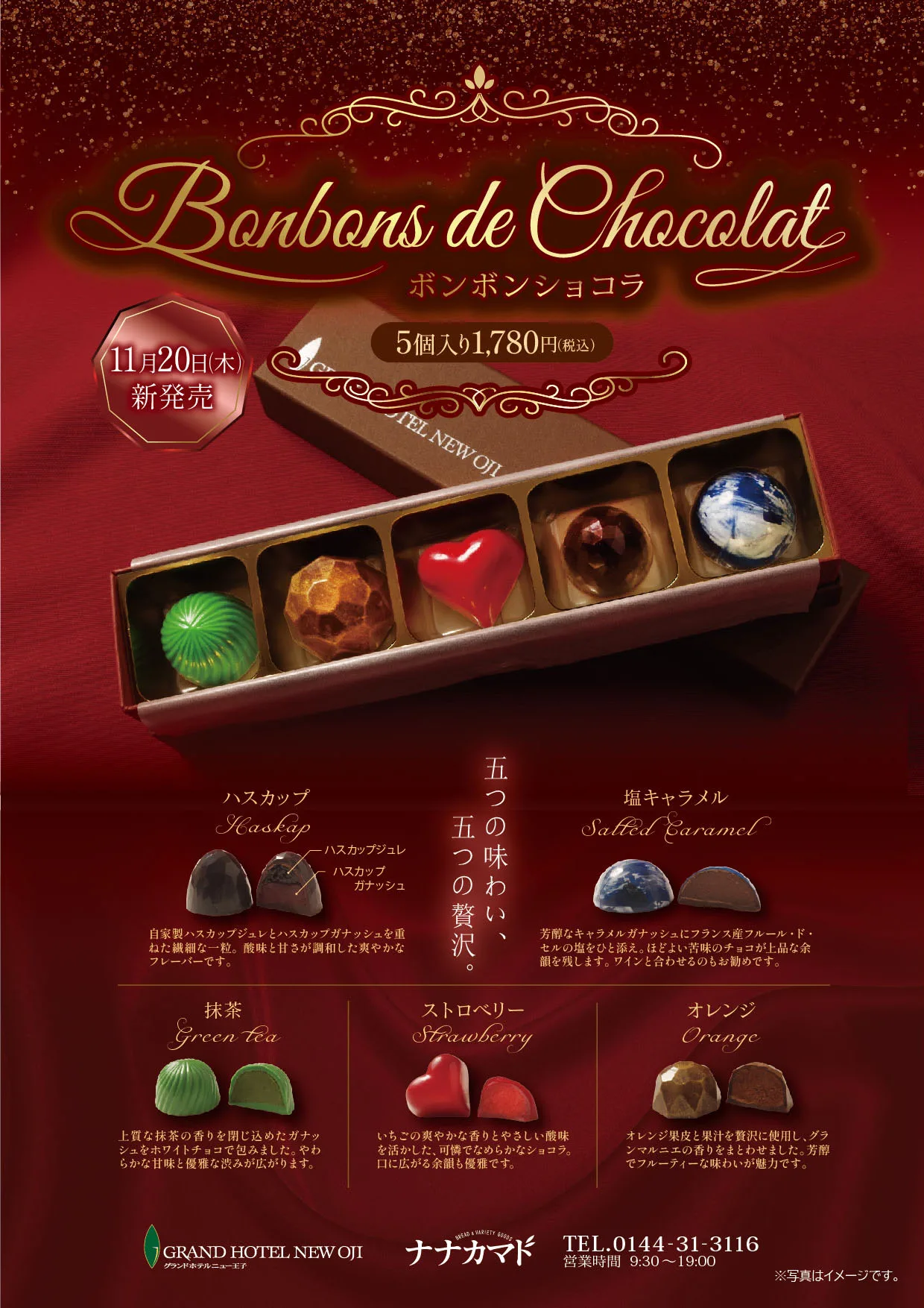 2025年11月20日(木)からナナカマドでグランドホテルニュー王子特製ボンボンショコラを販売いたします。