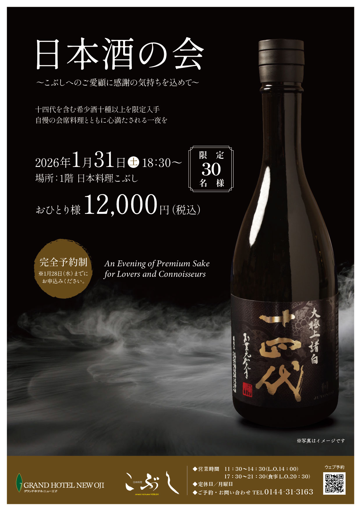 ご予約・お問合せは 「日本料理こぶし」へ 0144-31-3163