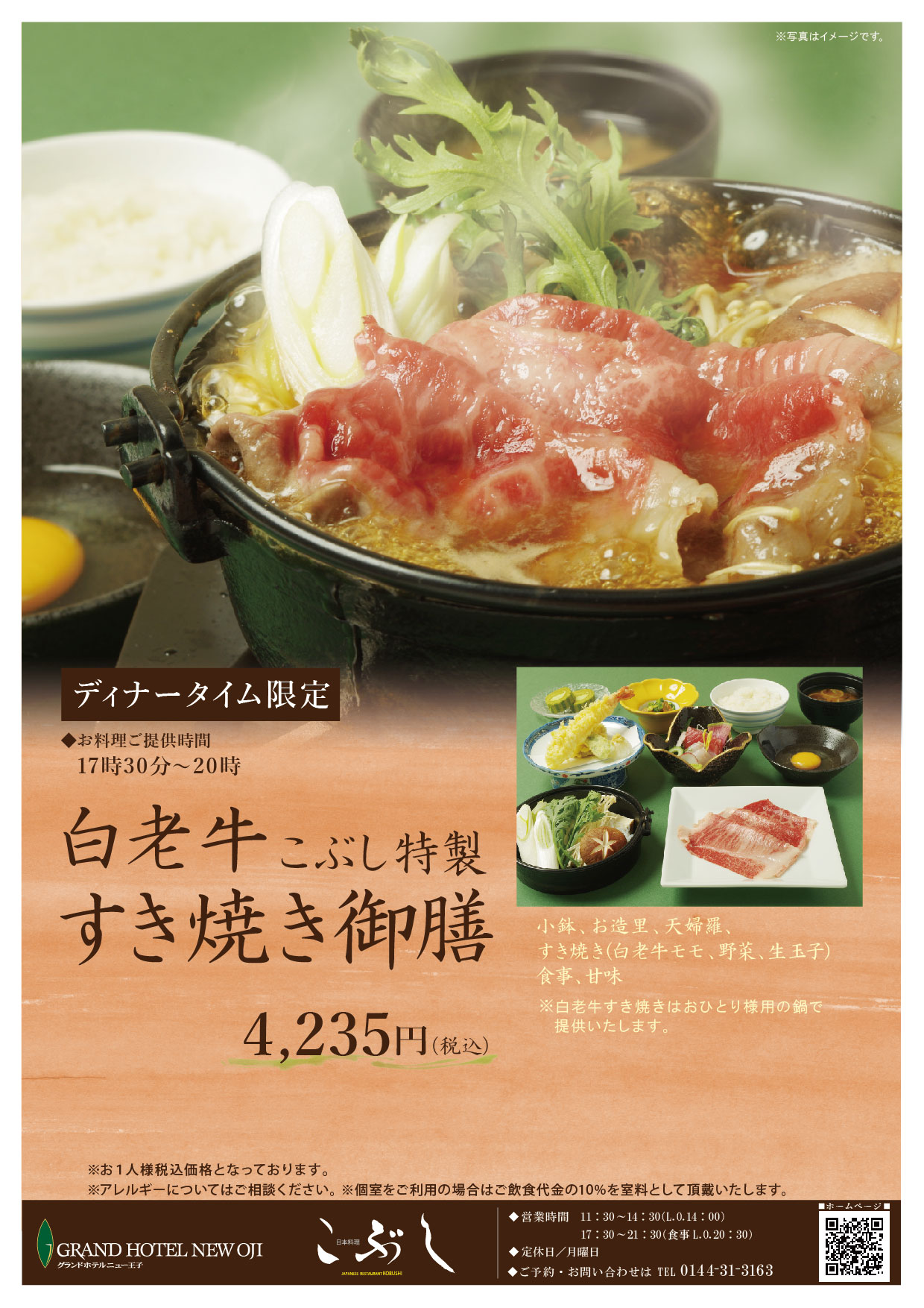 ※白老牛すき焼きはおひとり様用の鍋で提供いたします。