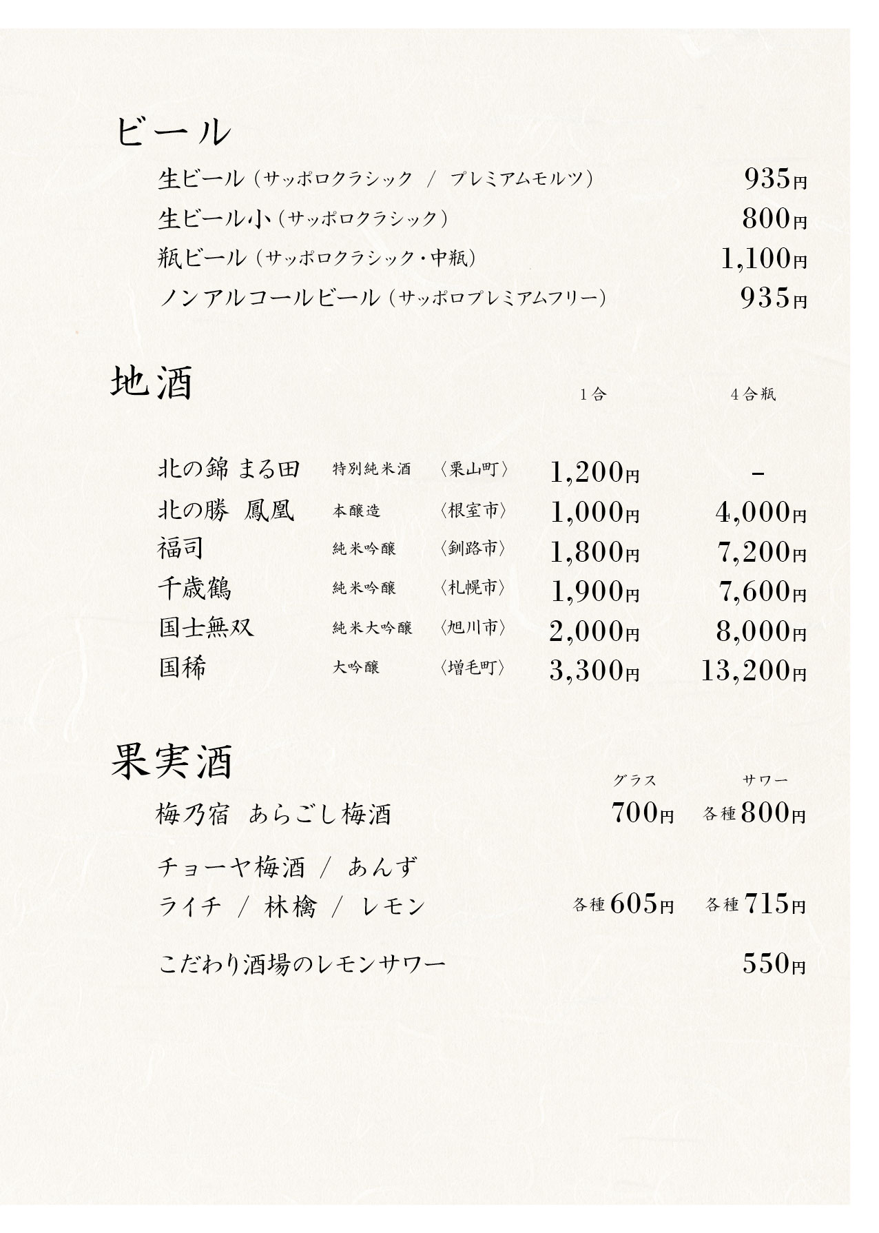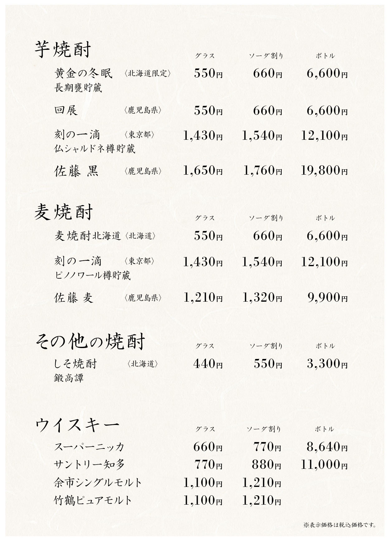 こぶし お飲物