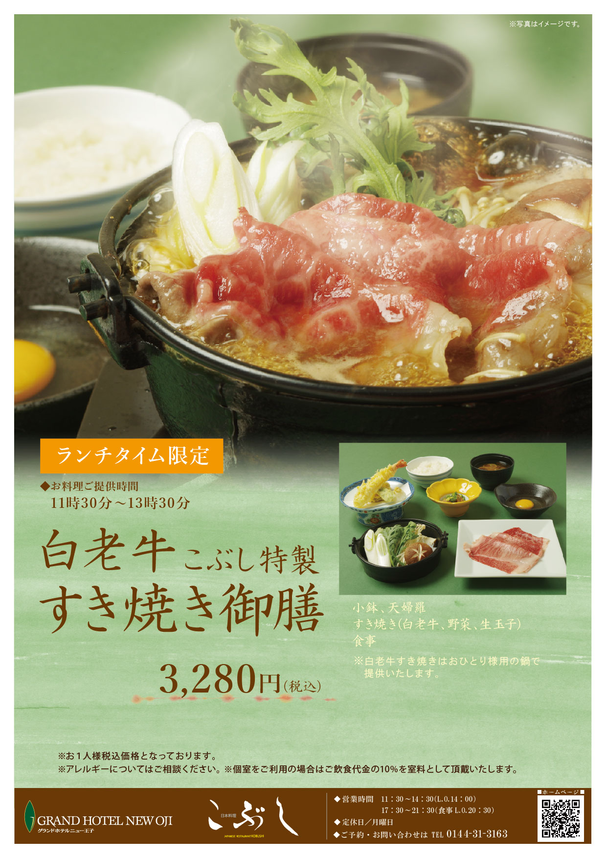 ※白老牛すき焼きはおひとり様用の鍋で提供いたします。